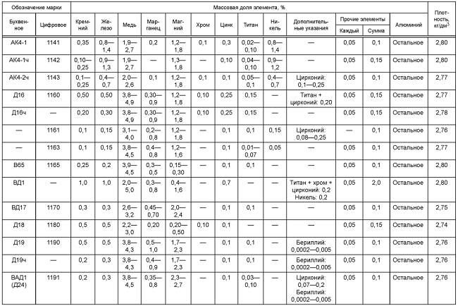 Алюминий марки Д16