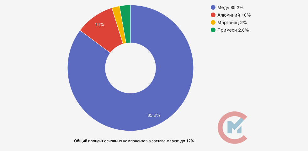Безоловянная бронза марки БрА10Мц2Л – сплав, основным элементом которым является медь, а легирующий компонент – алюминий. Используется для деталей арматуры, которые работают в пресной воде или жидком топливе. Обладает высокой коррозийной стойкостью и хорошей прочностью.